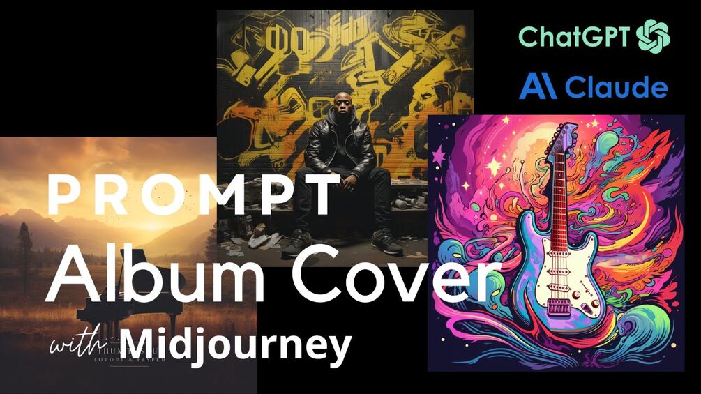 Create album cover design prompts for Midjourney using ChatGPT or Claude